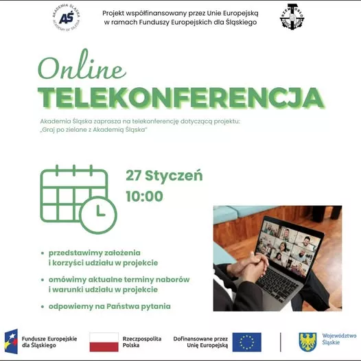 Operator – Akademia Śląska w partnerstwie z Cechem Rzemiosł Różnych i Przedsiębiorczości w Bytomiu zaprasza na telekonferencję dotyczącą projektu:„Graj po zielone z Akademią Śląska” Projekt ma na celu: Dostosowanie kwalifikacji, kompetencji i umiejętności zawodowych do potrzeb zielonej gospodarki 11720 osób dorosłych, zamieszkujących i/lub pracujących na jednym z terenów podregionów górniczych województwa śląskiego – subregionu centralnego […]