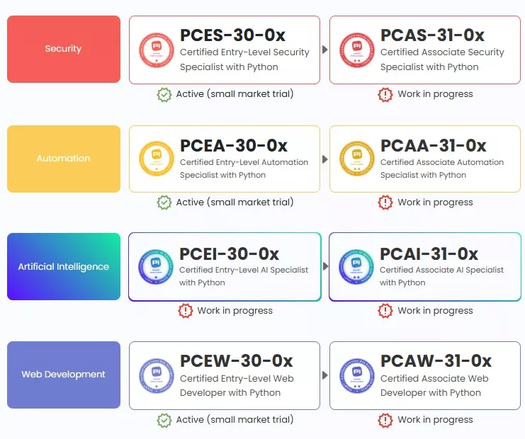 Instytut Pythona określił globalne ścieżki certyfikacji dla języka programowania Python i opracował międzynarodowy standard egzaminów z programowania w Pythonie.