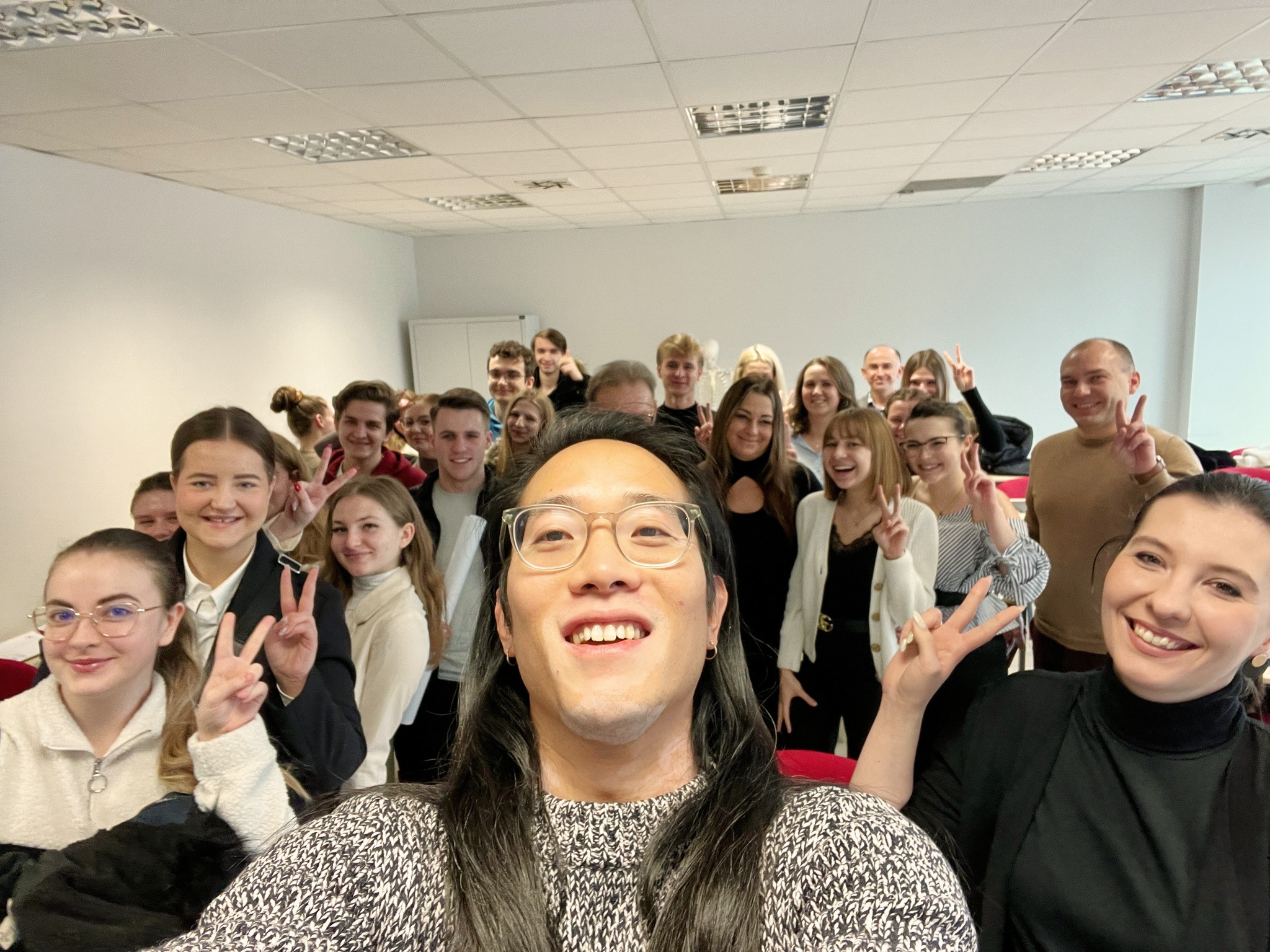 Spotkanie ze studentami: Podczas zajęć na Akademii Śląskiej Andy Yu zaprezentował kilka kluczowych realizacji, w tym budynek mieszkalny White Tree w Montpellier, którego projekt był inspirowany formą drzewa, budynek wielofunkcyjny KI w Lyonie oraz zieloną siedzibę Uniwersytetu w St. Gallen w Szwajcarii. Przedstawione przykłady posłużyły do omówienia koncepcji wprowadzania elementów natury do przestrzeni miejskiej i podkreślenia znaczenia integracji przyrody z architekturą. Dodatkowo, Andy poruszył kwestie związane z praktyką zawodową architekta, w tym równowagi między pracą a życiem prywatnym. Jego wystąpienie stało się okazją do refleksji nad wyzwaniami, jakie niesie współczesne projektowanie, oraz sposobami ich przezwyciężania w kontekście globalnych zmian i potrzeb.