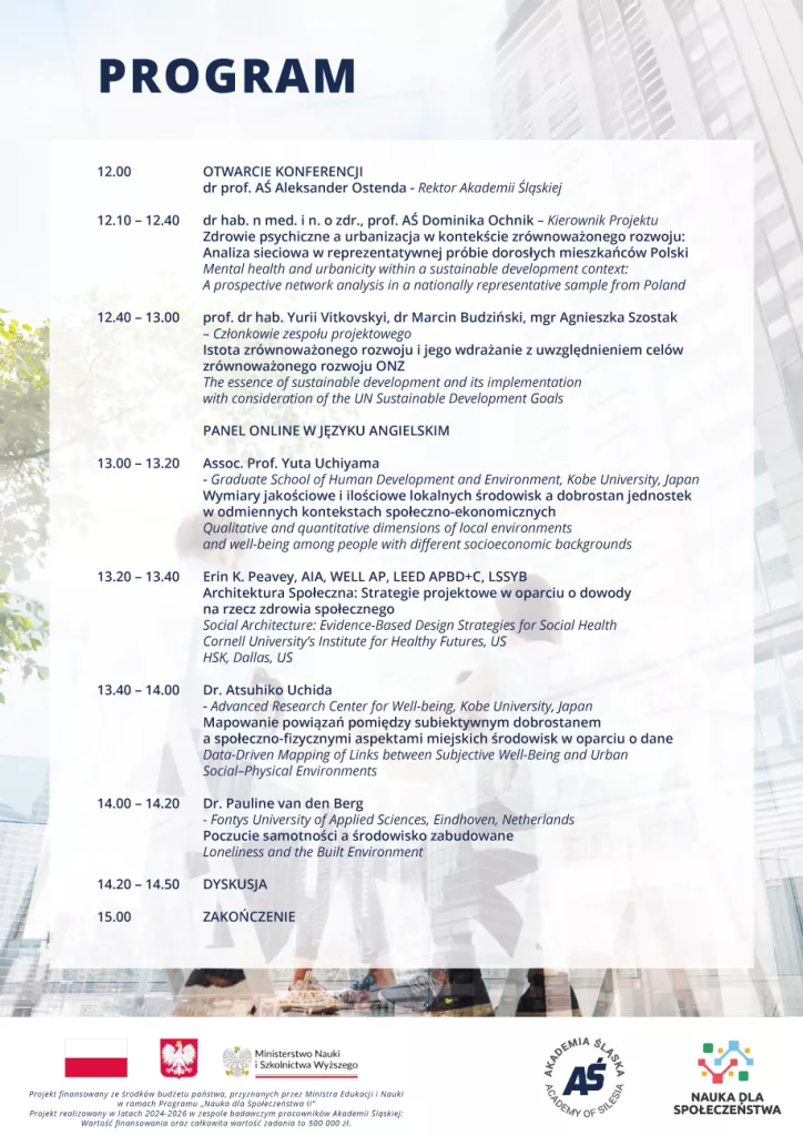 Projekt jest realizowany w otwartej formie, zapewniając dostęp do zanonimizowanych danych: Ochnik, D. (2024, September 17). Urbanization and Health in the Context of Sustainable Development. Retrieved from https://osf.io/5fjtm/