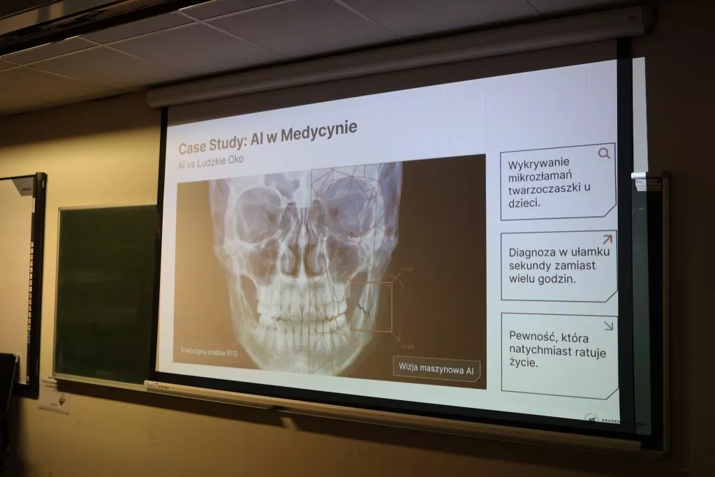Kluczowym punktem programu przygotowanego przez Katedrę Informatyki był warsztat prowadzony przez dr inż. Łukasza Walusiaka oraz mgr inż. Bartosza Ignaca pt. „Sztuczna inteligencja to nie przyszłość z filmów sci-fi”. Zajęcia zostały przeprowadzone w dwóch turach, co umożliwiło aktywny udział licznych grup uczniów szkół średnich.