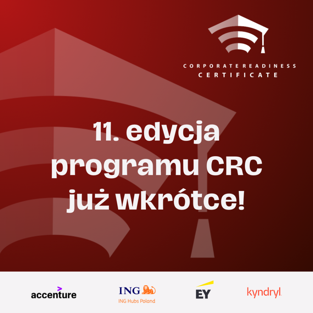Startujemy z zapisami do 11 edycji programu Corporate Readiness Certificate. Poniżej udostępniamy link do sylabusa zawierający ofertę tegorocznych ścieżek edukacyjnych oraz informator na temat programu CRC. Tym razem możemy Państwu zaproponować aż 46 streamów!